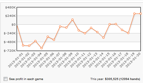 Τα πράγματα δεν ξεκίνησαν καλά για τον PostFlopAction που πολύ γρήγορα έχασε περίπου $200.000. Κατάφερε να κάνει δυνατό comeback και όχι μόνο πήρε πίσω τα χρήματα που έχανε αλλά έκλεισε το session ως μεγάλος νικητής με τα κέρδη του να ανέρχονται στα $290.000.
