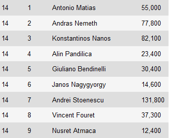 Στο τέλος της ημέρας chip leader αναδείχτηκε ο Σουηδός David Ostrom με 212.600 μάρκες.