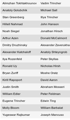 O Alimzhan Tokhtakhounov, που πρόσφατα είχε κατηγορηθεί πως προσπάθησε να δωροδοκήσει τους υπεύθυνους των Χειμερινών Ολυμπιακών Αγώνων του 2002, θεωρείται πως ήταν ο εγκέφαλος της υπόθεσης Taiwanchik-Trincher ενώ ο Vadim Trincher και ο Anatoly Golubchik ήταν επίσης σύμφωνα με το κατηγορητήριο ανάμεσα στα “μεγάλα κεφάλια”.