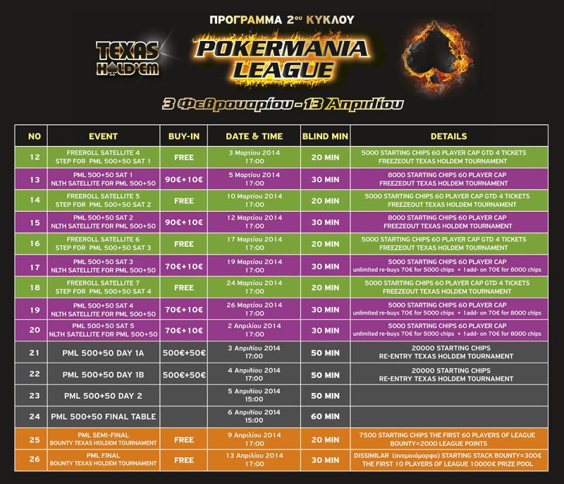 Τα προκριματικά συνεχίζονται και μπορείτε να κερδίσετε μία θέση στο Main Event των €550 ακόμα και εντελώς δωρεάν. Δείτε το νέο πρόγραμμα που έχει ανακοινωθεί για το PML €550 (στην gallery του άρθρου θα το βρείτε σε μεγαλύτερη ανάλυση).