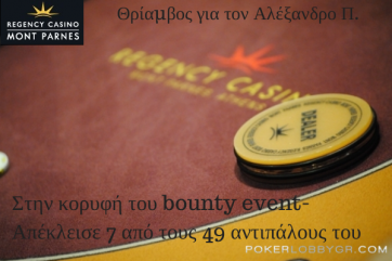 Με επιτυχία ολοκληρώθηκε το bounty τουρνουά στο Regency Casino Mont Parnes, το οποίο έφτασε το cap των 50 παικτών από νωρίς.