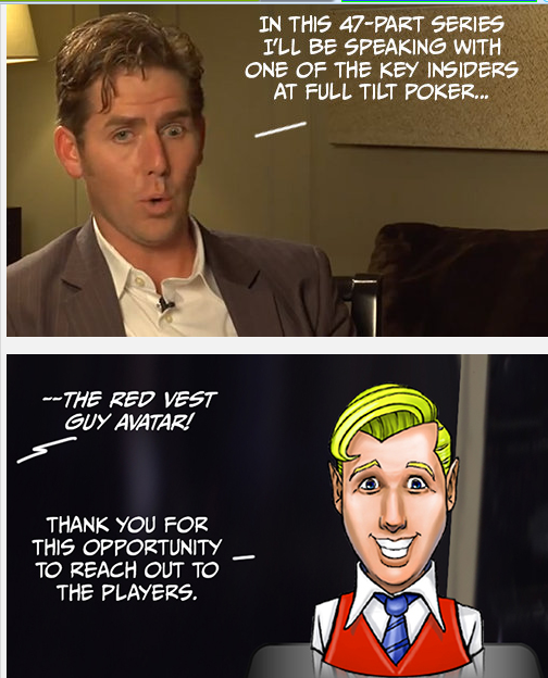 Ένα από τα μέλη του 2+2 δημιούργησε την παρακάτω καταπληκτική… συνέντευξη για την Full Tilt αλλά πριν ξεκινήσετε να την διαβάζετε να σας ενημερώσουμε πως γίνεται αναφορά σε όργια, ναρκωτικά και περιέχει πολλές… παλιοκουβέντες!