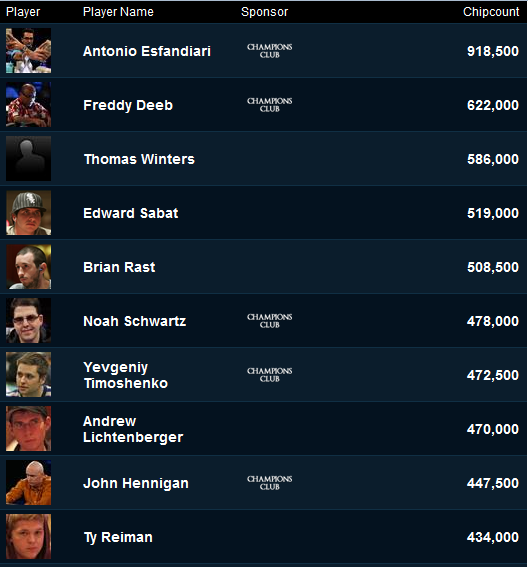 Με πολύ καλό stack συνεχίζουν επίσης οι: Freddy Deeb, Eddie Sabat, Noah Schwartz, Yevgeniy Timoshenko, Brian Rast, John Hennigan και Shawn Buchanan.