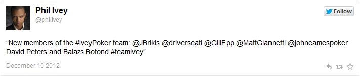 Σαν να μην έφταναν μόνο αυτοί, όμως, ο Ivey αποφάσισε να ενισχύσει την ομάδα του και την Δευτέρα ανακοίνωσε μέσα από το Twitter την συνεργασία του με ακόμη επτά επαγγελματίες παίκτες πόκερ.