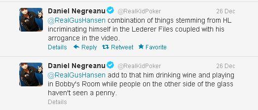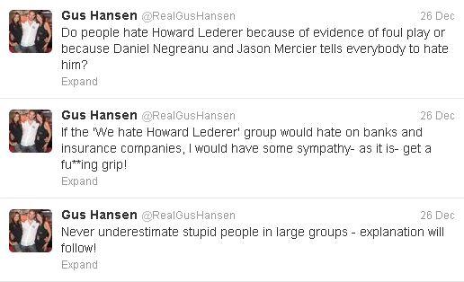 Είπε κανείς ότι τα Χριστούγεννα είναι η γιορτή της αγάπης; Ήταν σίγουρα η μέρα που ο Gus Hansen διάλεξε να υπερασπιστεί τον Howard Lederer στο Twitter (ή μάλλον, να τα βάλει με τον Daniel Negreanu), δημιουργώντας μεγάλη σύγχυση και πολλές αντιδράσεις.