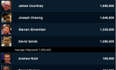 Με πολύ μικρή διαφορά ακολουθεί στην δεύτερη θέση του chip count o Joseph Cheong με 1.646.000 μάρκες.