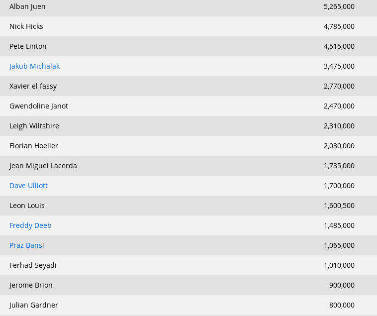 Στο τέλος της ημέρας chip leader αναδείχτηκε ο Alban Juen, ο οποίος κατάφερε να συγκεντρώσει 5,265,000 μάρκες.