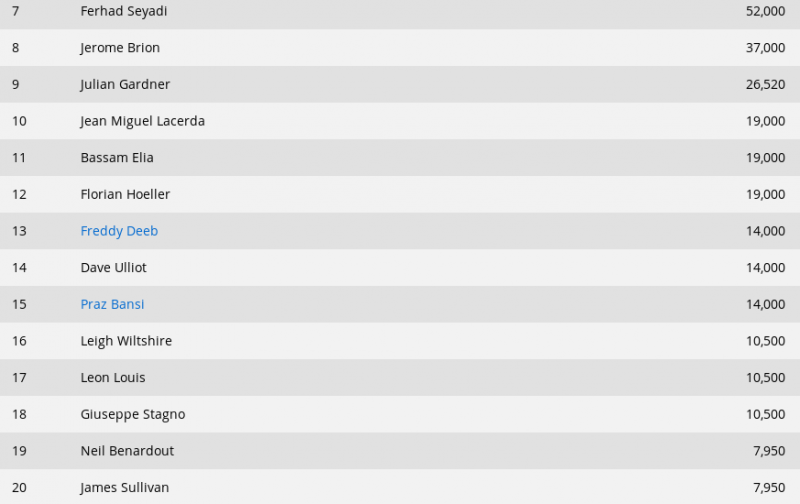 Και οι 6 εναπομείναντες παίκτες έχουν εξασφαλίσει από €73,000 και μιας και το εγγυημένο έπαθλο της πρώτης θέσης φτάνει τα €1.000.000 είναι πολύ πιθανό να τους δούμε να προχωράνε σε deal από τα πρώτα λεπτά της ημέρας.