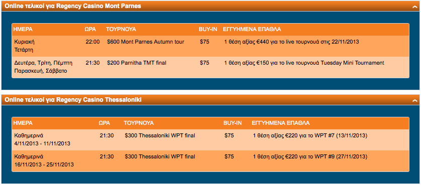Ακολουθούν μερικές πληροφορίες για τα τουρνουά των Regency Casino.