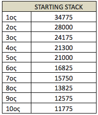 Ανάλογα με τους πόντους τους οι 10 φιναλίστ θα ξεκινήσουν με τα ακόλουθα stack: