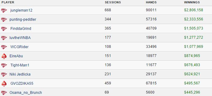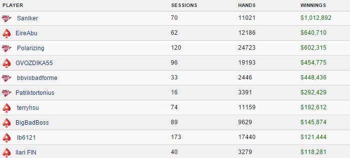 Ο παίκτης που συγκεντρώνει τα βλέμματα δεν είναι άλλος από τον Γερμανό Sanlker που ενώ τον Οκτώβριο οι απώλειές του ξεπέρασαν το $1.000.000 τώρα έχει καταφέρει να μετράει κέρδη ύψους $1.000.000.