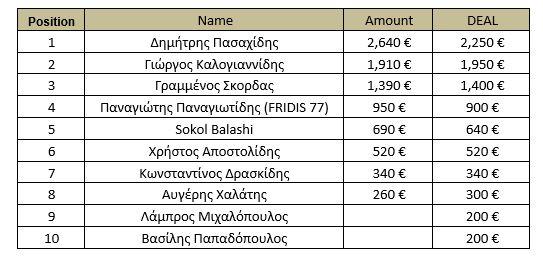 Στις πληρωμές θα έμπαιναν οι 8 κορυφαίοι και ο μεγάλος νικητής θα κέρδιζε το ποσό των €2640.