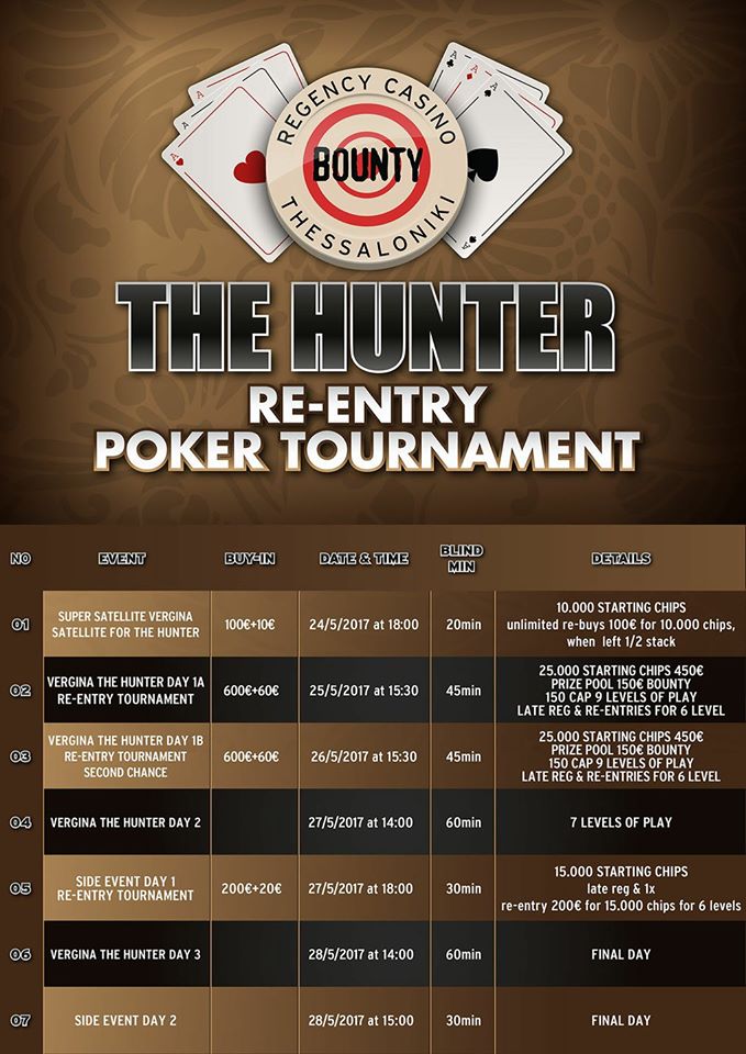 O χρόνος μετράει αντίστροφα για το πρώτο μεγάλο Bounty τουρνουά που θα διεξαχθεί στην Ελλάδα. Από τις 25 μέχρι τις 28 Μαΐου το Θέατρο Βεργίνα θα μετατραπεί σε ένα απέραντο poker room για να φιλοξενήσει το πολυαναμενόμενο The Hunter.