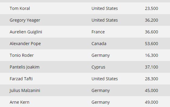 Chipleader μόλις ξεκινήσει το παιχνίδι θα είναι ο Kework Besiktasliyan με 177.400 μάρκες ενώ το 2ο stack έχει ο Kyle Muelrath που έκλεισε με 131.500.
