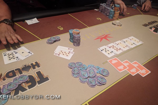 Η δράση έχει κολλήσει στους έξι παίκτες καθώς αν και έχουν παιχτεί αρκετά all-in, διπλασιάζουν οι παίκτες με το μικρότερο stack.
