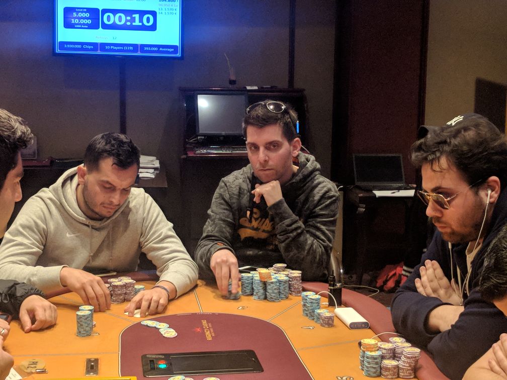 Το τουρνουά βρίσκεται πλέον στο heads-up όπου ο Λαμπρόπουλος έχει σημαντικό προβάδισμα μαρκών με 3.000.000 έναντι 900.000 του ΕΜ.