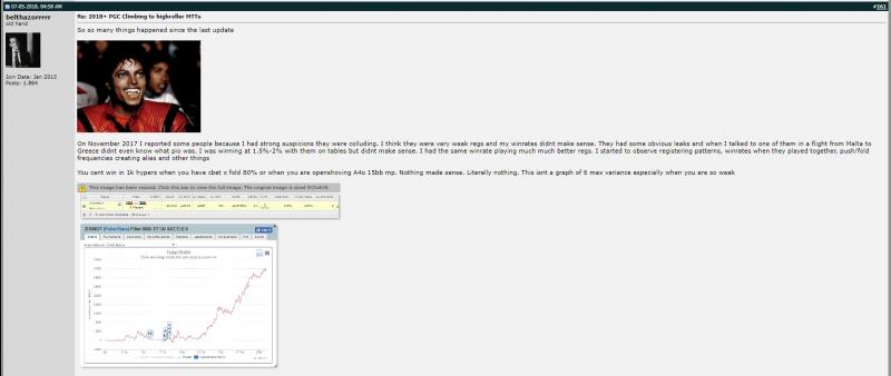 Σε αυτό το σημείο αξίζει να σημειώσουμε πως ο “belthazorrrrr” ισχυρίστηκε πως οι συγκεκριμένοι παίκτες πήραν σχεδόν $1.000.000 από τα 6max hyper τραπέζια και πως ο ίδιος στο παρελθόν εξαπατήθηκε και πάλι για $40.000 από άλλον παίκτη.