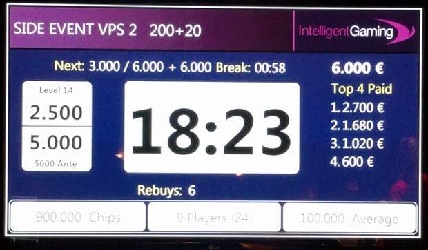 Στο side event οι συμμετοχές έφτασαν τις 24 και έγιναν 6 rebuys που ανέβασαν το έπαθλο στα €6.000.