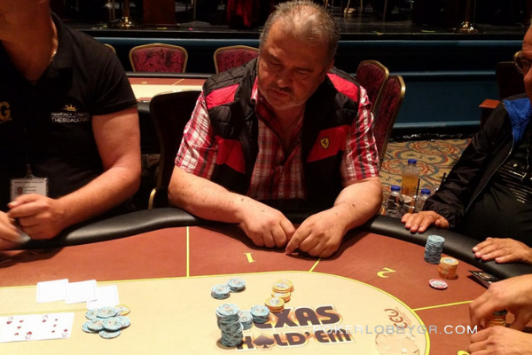 Τα blinds έχουν ανέβει και πλέον είναι 30.000/60.000/60.000antes. Ο Σαμαντσίδης που είχε περίπου 300.000 μάρκες μπήκε all in και ο Αποστόλης Μπεχράκης από το blind έκανε το call.