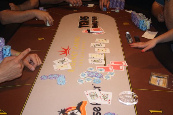 Ο Βαγγέλης μας είπε ότι έδωσε τις μάρκες του (72Κ) στον Ανδρέα Βλάχο, όταν έκανε preflop reraise all in με ΑΤ, απέναντι σε βαλέδες που Βλάχου.