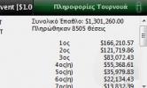 Από Έλληνες παίκτες τη καλύτερη πορεία σημείωσε ο “marionkala” που κατάφερε να φτάσει μέχρι την 29η θέση του τουρνουά και κέρδισε το ποσό των $819,79.