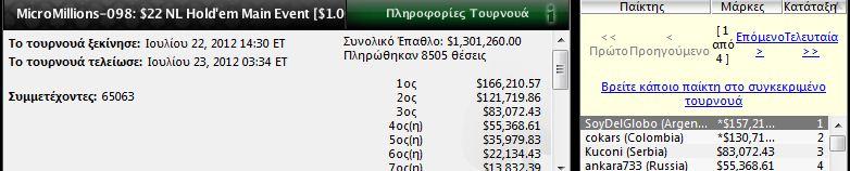 Με πολύ μεγάλη επιτυχία ολοκληρώθηκε χτες η σειρά “MicroMillions II” της PokerStars που μέσα από τα 100 events που πραγματοποιήθηκαν τις τελευταίες 10 ημέρες μοίρασε περισσότερα από $5.000.000.