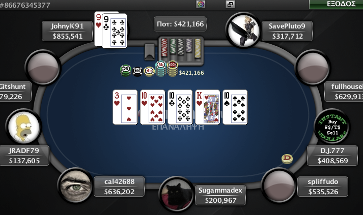 Ο Έλληνας παίκτης κρατούσε T-T και ο αντίπαλός του 9-9.