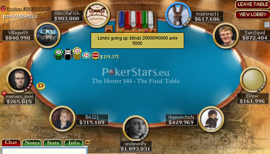 22.34: Παράλληλα με τα υπόλοιπα events ξεκίνησε και το "The Hotter $55", το οποίο είναι turbo, όπως και όλα τα υπόλοιπα "Hotter" του PokerStars.