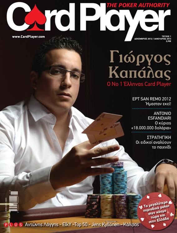 Στο πρώτο τεύχος θα δείτε στο εξώφυλλο να φιγουράρει ένας από τους καλύτερους Έλληνες παίκτες, ο Γιώργος Καπάλας ο οποίος έδωσε μια αποκαλυπτική συνέντευξη στο Card Player.